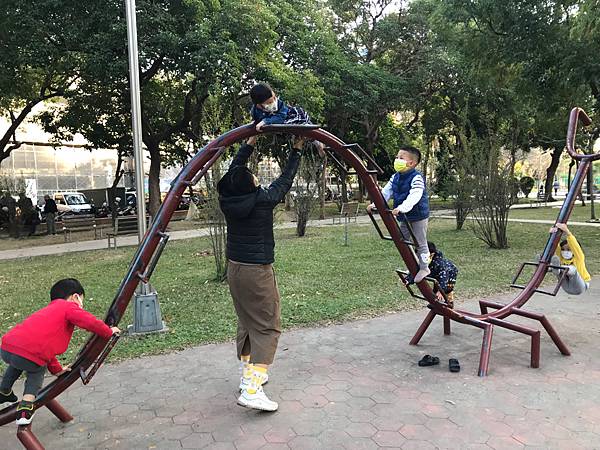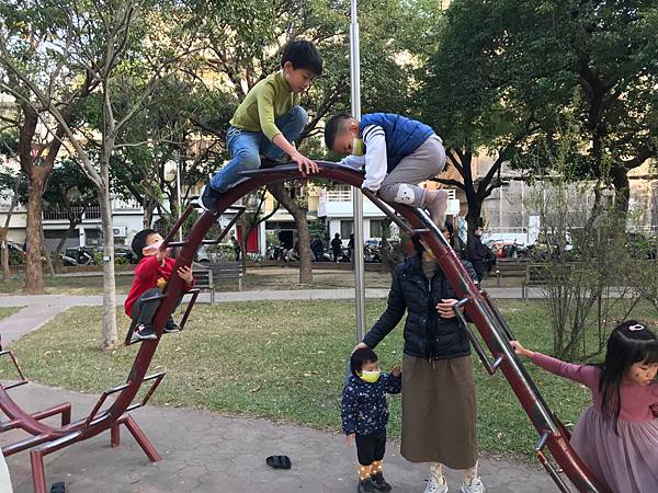 吃完飯後去兒童公園晃晃,一晃待三個小時。遇到育瑄家,跟他們一起玩。羊和Batu好開心可以見到朋友,熱情的羊還把Sina抱起來。