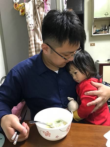 看到回家吃飯的爸爸,女兒黏上去。今天兩個孩子還是拉肚子,但沒吐了。在病情好轉的路上。但孩子胃口很差,晚餐精心煮了湯麵,Batu沒吃幾口,Sina只喝湯。(兩個孩子原本是麵食控)看來病好後需要送去奶奶家開胃,希望可以回到原本的胃口。