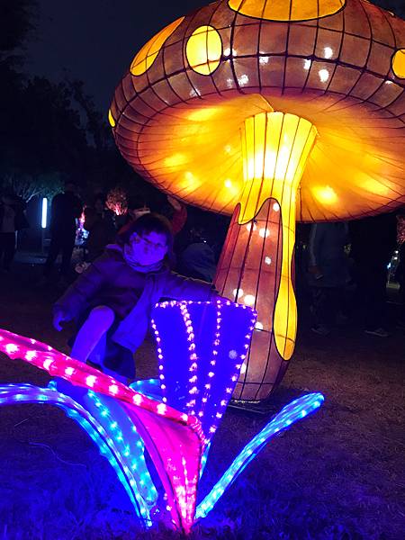 造型燈區很適合小孩近看與拍照,但燈亮亮的,孩子暗暗的,我總感覺拍的也看不出是誰,一旁的家長也笑說拍出來黑糊糊一片。所以,就多用眼睛欣賞吧,把美留在心底。